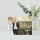 Det här är ett klassiskt bröllop-tack. Den här kortfunktionen är ett foto på framsidan och baksidan. "Tack" i ett elegant med vitt skript och anpassningsbar tack för ett meddelande som kan vara personlig.