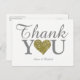 "Kärlek och Tack" vykort för bröllop.. På framsidan: ett faux guld-hjärta med ord "tack" och med ditt eget namn på en vit, ren och tydlig baksida: anpassningsbar ord " ... för att ha firat vår speciella dag med oss"