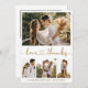 Elegant, Modern Heart-teckensnittsskript Bröllop 4 Photo Collage - tack för ditt kort i Guld och White. Snyggt, minimalistisk bröllop-kortmall med fyra (4) rasterfotosamlingar på framsidan och ett (1) foto på baksidan. "Kärlek och tack" text i ett handskrivet kalligrafiskt sött hjärtteckensnittsskript med bytt svan. Anpassa med ditt namn och tack för meddelandet. Om du behöver hjälp eller matcha objekt kontaktar du designern!