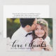 Kärlek och tack för Whimsical Script Photo Bröllop Kort