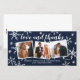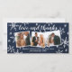 Sprid kärlek denna hölsäsong med detta helt anpassade julkort med ett tackkort för nygifta. Det har 3 foton och handritade snöflingor och en marinblå texturerad bakgrundseffekt.