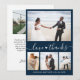"Kärlek och tack" Hand skrev Eleganten med skript Heart, minimalist Bröllop Photo Collage - tack för ditt kort i marinblått färg. En enkel söt bröllop-kortmall med fyra (4) foto på framsidan och ett foto på baksidan. Med texten "Kärlek och tack" i ett söt-handskrivet skrivteckensnitt för svan-typografi. Lägg till ditt namn och tack.