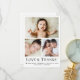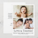 Personalisera dessa tacksamhetskort för babyfirande med tre vackra bilder på ditt barn och familj. Tacka din familj och vänner som har överösts dig med sin kärlek och presentera ditt nya barn med bilder som de kan minnas i många år medan barnet växer. Modern och unik klassisk serif-stil med "Kärlek och tack". Inkludera barnets namn, födelsestatistik och ditt eget personliga och genomtänkta meddelande. Hjärt detalj för en extra söthet.