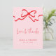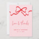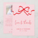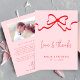 Kärlek och tack Rosa Red Bow Photo Bröllop Kort