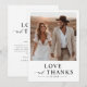 Med de här bho-chic-fototackkorten framför du din hjärtliga tacksamhet på ett vackert sätt. Med ett mjukt, handskript som täcker över ett svartvitt foto är den här designen en perfekt för att fånga bröllop firande. Låt ditt favoritfoto från bröllop bläddra igenom meddelandet "Kärlek & Tack" för en verkligt personlig beröring.