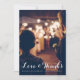 Detta bröllopfoto tackar dig att card särdrag ett stort foto från ditt bröllop med "kärlek och tack" i cursive text för vit och ditt egna meddelande på baksidaen.