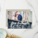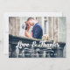 KÄRLEK OCH TACK TYPOGRAFI BRÖLLOPS FOTO TACK KORT. Design av Elke Clarke© för MonogramGallery tryckt av Zazzle. Skicka ut ditt bröllop tack meddelande som nygifta till dina vänner och familj med hjälp av detta retro, tack bröllops fotokort med orden "Love & Thanks" skrivna i en vit fet handskriven typografi skript text överlägg. Ersätt provfotot med ditt eget. Lägg till ditt personliga tack meddelande på baksidan eller lämna tom och skriv för hand ditt meddelande personligen. Andra färger tillgängliga. Burlap linne bakgrund är en tryckt fotoeffekt.