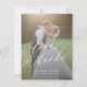 Enkel minimalistisk elegant chic kärlek och tack vare calligraphy script mörk överlägg text personlig bröllop tack vare att du har kort med två foton, din anpassningsbar text och namnteckning.