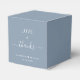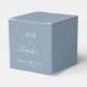 Elegant dammblå bröllopspresentlåda med "kärlek + tacksamhet" i enkel vit typografi och ett elegant vitt skrivsätt med svängar, era förnamn sammanbundna med ett hjärta och datumet för ert bröllop.