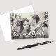 Stilfull anteckningskortmall för tack efter bröllop med "kärlek och tack" i ett chic, handskrivet typsnitt med eget monogram. Inkluderar ett landskapsfoto av bruden och brudgummen på framsidan och ett andra foto med anpassad text för tackmeddelande som kan anpassas på insidan av kortet. Klassiskt svart och vitt färgschema kan anpassas helt. Fotofilter (inklusive svart/vitt och sepia) finns också tillgängliga via anpassa.