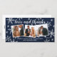 Sprid kärlek denna högsäsong med detta helt anpassade julkort med ett tackkort för nygifta. Det har 3 bilder och handritade snöflingor och marinblå texturerad bakgrundseffekt.