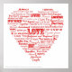 En kollage från kärlek hjärtformade ord fylld med ord om att vara i kärlek.