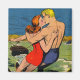 Färgfull illustration av ett par kyssande medan de skidar bakom en båt. Från en vintage tecknad bok