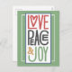 Kärlek Peace & Joy Helgdag Postcard. Produkten är helt anpassade och det finns samordningsprodukter. Om du vill ha hjälp med att redigera den här produkten, skicka ett meddelande till mig och jag skulle vara lycklig för att hjälpa till.