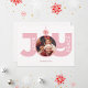 Kärlek, fred och jul tillsammans med familj och vänner. Skicka semesterhälsningar med det här snygga, varma och glada kortet med en delikat rosa vattenfärgspoinsettia, medan "O" i JOY fungerar som platshållare för ditt familjefulla foto. Poinsettia-blomman upprepas på baksidan där du också kan lägga till året. Joy till världen!