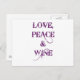 "Kärlek, fred och Vin" i ett stadsteckensnitt i finare, lila färg