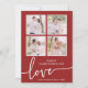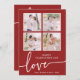 Elegant och snyggt, det här Valentindagskortet har en fotokollage eller fyra familjefoto med kärlek i ett handskrivet calligraphy-skript i trendiget på röd bakgrund. Kortets baksida innehåller text för att lägga till ett personligt meddelande.