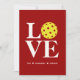Plockkulans platta fotokort med trendig-elegant med staplat brev som stavar "KÄRLEK" med en pickleball boll i ställe i O på en rik färgad bakgrund. Stor kant-till-kant-bild. Personligt meddelande - Platshållare kan anpassas för enskilda gruppmottagare eller ersättas med egna känslor. Finns i ett markerat urval av energiskt färg. Finns även i vikta kortversioner och utan foto - kontrollera butiken. Perfekt för Alla hjärtans dag, Sötaste dagen, bröllop-årsdagen eller vilken dag som helst!