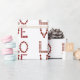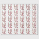 Ord "KÄRLEK" skriven med bilder av Rubies. På baksidan en fantastisk som är utformad för ett hjärta.