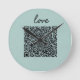 En visuellt tilltalande QR-koddesign med ord "Kärlek" på en framträdande plats överst. Själva QR-koden är ren och väldefinierad. Den övergripande utformningen är enkel men ändå elegant.