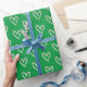 Kärlek rosa hjärta grönt inpackningspapper för födelsedagar, baby shower, bröllop eller högtidspresenter. Gå inte till festen med samma inpackningspapper, var annorlunda.