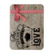 Typografi stil citerar "Den hemliga ingrediensen är alltid kärlek" på bakgrunden av rustiskt trä med rött gingham-band