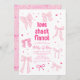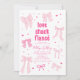 Coquette rosa-inbjudningskort för möhippan-kort med som illustrerar rosett band och hjärtan. I texten står det "kärlek shack fiance".