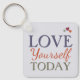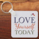 Gör en kort dag med vår charmerande nyckelkedja i metall från Zazzle! Med ord "kärlek själv i dag" och kärlek hjärtat, med blommor på baksidan, är denna nyckelkedja en perfekt som påminner om att omfatta självaste kärlek. Anpassa det med initialer för att göra det unikt för dig. Oavsett om det gäller nycklar eller som en tänkbar gåva tillför den här nyckelkedjan lite positivitet och elegans till vardagslivet. Hämta din nu och ta med dig lite inspiration var du än är!