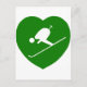 Kärlek Skiing Grönt Heart Vykort