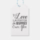 Den här märkrn med gåva från elegant bröllop innehåller den romantiska frasen "Till Kärlek, Skratt, och lyckligtvis allt efter" i ett typografiskt stil-grafikobjekt. Anpassa vända sidan med initialer, namn och bröllop. Byt enkelt ut färg genom att helt enkelt välja en annan bakgrund för färg.