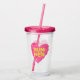 Kärlek sommar akrylkopp med rosa hjärta. Söt och fräsch vattenmelon med frön. Modern stil och minimalism.