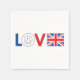 Det här är kärlek britain. Vi har ord kärlek och den brittiska flagga. Den här brittiska konstruktionen i kärlek ser underbar ut på denna Pappra Napkins