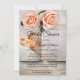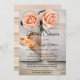 Ett romantiskt inbjudningskort för möhippan med bokar med persiko ro, bröllop ringar och strandtäcke. Snygg för en blivande brud som kärlek bokar!