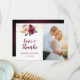 De botaniska bröllop-tackkort som du använder har en modern vattenfärgsdamm i ro och burgundisk blommigt i ro med löv och snöre i ljus. Anpassa den med ditt foto från bröllop, namn, datatext från bröllop och ditt tack på baksidan. De här fototackkorten ingår i en samling som innehåller matchande objekt från bröllop. Besök min butik för att se fullt.
