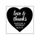 Lägg till en personlig finish för att tacka med denna stilrena och söta hjärtformade gummistämpel. All text är enkel att anpassa eller ta bort. Designen har handskriven stilspråkskalligrafi "kärlek & tack" och elegant modern typsnittsnamn och datum. Perfekt för ett bröllop, brud shower eller annat tillfälle.