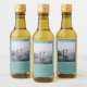 Dessa mini-vin-flaska-etiketter har en design som är enkel, modern och minimalistisk med ditt foto på en teal eller turkotisk färgad och en bildtext med texten "Kärlek & Tack" samt parets och bröllop-datumets namn. Det finns också utrymme för vin eller andra flaska innehåll. Perfekt för att tacka speciella gäster.