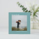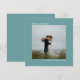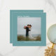 Tack vare dessa kort från bröllop är de enkla, minimalistiska och vackra. En ren design med ett fyrkantigt foto på en teal- eller turkos-färgad med texten "Kärlek & Tack" och namn.
