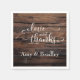 Kärlek & tack, vitt skript på Mörk Texturerat trä Pappersservett