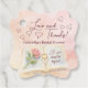 Tacka dina bröllopsduschgäster med dessa söta presentkort. Den roliga sagodesignen har en svagt rosa och persikofärgad akvarell av en bok med en ensam ros och en guldfärgad förlovningsring balanserad på de öppna sidorna som formar en hjärtformad skugga. Boktiteln lyder: Ett nytt kapitel börjar! Titeln lyder Kärlek och Tacksamhet med romantiska hjärtan utspridda!