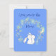 Ett bunnypar sitter tillsammans under det glödande måne, viskar glatt i kärlek er till måne och tillbaka igen. Snyggt kort för Alla hjärtans dag, årsdagar eller vilken dag som helst du vill säga att jag kärlek dig.
