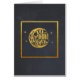 Ett litet sött hälsningskort. Ett sött ordspråk: Kärlek till måne och tillbaka. Romantisk typografi med guld måne skriven i ett sött, kallt teckensnitt. Bakgrunden är en svart krita stil struktur.
