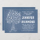 Blått, modernt kärlek träd inbjudningskort för möhippan med hjärta och initialer.