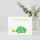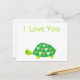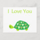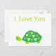 Kärlek-vykort. Anpassadets vykort har en söt grönt kärlek-sköldpadda med ord I Kärlek You.