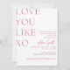 Ställ in tonen för en roligt och en möhippa med vår inbjudan "Kärlek You like XO". Den här lekande och charmerande designen är perfekt för en möhippa fylld med kärlek, skratt och många söta ögonblick. Den romantiska "XO" (kramper och kyssar) inspireras av den här inbjudan. Den är det idealiska sättet att låta dina gäster veta att de är på för en fullt i firande av värme och kärlek.