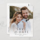 Ett svart kalligrafiskt skript i bröllop spara datum med text med ett personligt foto. Känn dig fri att anpassa bilden och texten.