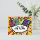 Anpassa med dina namn och detaljer för att tillkännage ändringen av datum för ditt speciella evenemang. Modern, rolig, retrodesign med tecknad serie popkonst-tema, perfekt för bröllop, bröllopsdusch, baby shower, dop, förlovningsfester, årsdagar, examen, födelsedagsfirande och andra speciella evenemang under året! En cool, trendig och rolig design som sätter kraft i din dag. Designad av Thisisnotme©