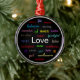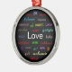 Kärlek Värld runt I Black Premium Metall Ornament är en unik och underbar gåva till vänner, familj eller den mycket speciella personen! Med typografi av eleganten mot en klassisk svart bakgrund kommer denna moderna dekoration att komplettera vilken hemdekoration som helst, samtidigt som den uttrycker kärlek budskap på olika språk från hela världen! Njut av dekorationens skönhet som den är, eller anpassa den enkelt genom att ändra text, typsnitt och färg.
