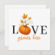 Skicka varmt fall hälsning med de charmerande helgdagskorten där frasen KÄRLEK växer här med en pumpa som "O". Perfekt för Thanksgiving-, höst- eller firande-meddelanden eller säsong-meddelanden, dessa kort för med sig mysigt rustika till varje ton. Perfekt för familj, vänner, eller någon som kärlek festive faller dekor.