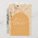 Välkommen vänner och familj till en förtjusande hösttematiserad "Smutt- och syn"-fest med vår eleganta inbjudan "Förälska dig"! Framsidan på denna charmiga inbjudan visar vackra krämfärgade och vita blommor kompletterade med en mjuk gul valv, som fångar essensen av höstens skönhet. Den hjärtliga rubriken "Förälska dig" sätter tonen för ett varmt och inbjudande firande, med alla viktiga festsdetaljer elegant presenterade nedan. Baksidan av inbjudan har gott om utrymme för en bild i full storlek, perfekt för att visa ett älskat foto av din senaste nykomling. Fira denna speciella tilldragelse med stil med en inbjudan som perfekt kombinerar säsongens charm med
