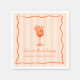 Lägg till en touch av personlighet till din möhippa bar med denna anpassade Kärlek vid första Spritz cocktail servett. Designad med mjuka persikostrimmor, en fantastisk Aperol spritz-illustration och retro-vågiga ramar, är den perfekt för spritz-stationer, signaturdrinkar eller sommarens bröllopsbrunch. Anpassa med hedersgästens namn och evenemangsinformation för en chic finish.